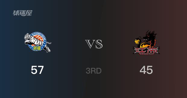 三节结束,新疆以57-45领先江苏12分。